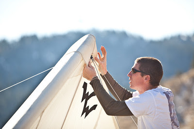 In October I met up with BJ on a day that had potential, but the front stalled and the east wind turned south allowing us only quick sled rides to the LZ. A photographer named Rich Crowder came out to shoot BJ and got some shots of me too. Rich is an accomplished outdoor photographer how wanted to add some hang gliding stock to his portfolio. Although we didn't fly very long that day, Rich did an excellent job capturing what goes into flying, from the hike up to the set up. You would think we were going off on hundred mile record attempts from the mood, but alas we were on the ground in less than five minutes! Here are his shots: